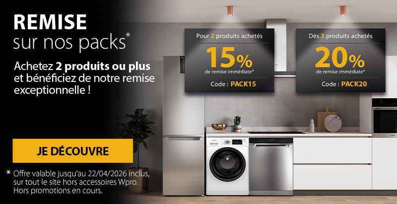 Achetez l'électroménager Whirlpool de vos rêves au meilleur prix sur notre boutique en ligne et profitez des soldes d'été 2025 et offres de remboursement ainsi que de la livraison gratuite à domicile. Pour être sûr de faire le bon choix, découvrez toutes nos astuces sur comment choisir vos appareils électroménagers dans la rubrique blog