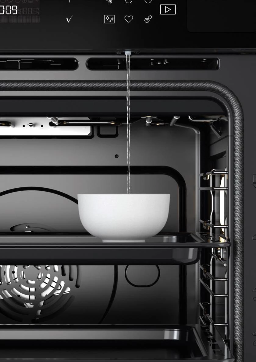 3 niveaux d'injection vapeur et 1 niveau en 100 % vapeur. La cuisson avec 100% de vapeur fait ressortir toute la saveur des aliments, ce qui permet aux consommateurs de déguster des repas parfaitement sains et dont les nutriments, les vitamines et les minéraux sont préservés.