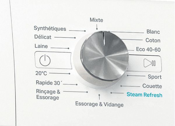 FreshCare+, préserve la fraîcheur du linge - Départ différé 1-24h - Programme Steam Refresh - Programme Rapide 30'