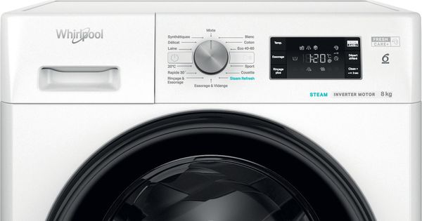 Le lave-linge Whirlpool FFBP 8489 BV FR est un modèle posable à hublot, en blanc, avec une vitesse d’essorage rapide de 1400 tours/min. Doté de la technologie 6ème SENS, il ajuste automatiquement les paramètres selon la charge, optimisant eau, énergie et temps. Sa capacité de 8 kg est idéale pour les familles. Le programme rapide de 30 minutes permet un lavage efficace en peu de temps. Grâce à FreshCare+, le linge reste frais jusqu'à 6 heures après la fin du cycle grâce à l’action combinée de la vapeur et du brassage. Le programme Steam Refresh ravive les vêtements en 20 minutes en supprimant odeurs et plis sans lavage complet. Son moteur à induction garantit un fonctionnement silencieux et durable. Classé énergétiquement A, ce lave-linge permet de réaliser d'importantes économies. C’est un appareil performant, pratique et économe, conçu pour un usage quotidien tout en prenant soin du linge.